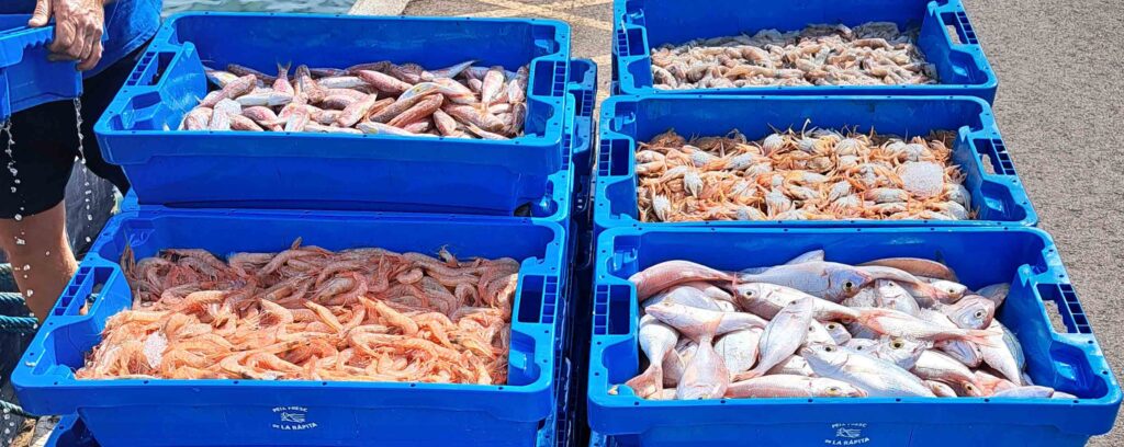 La Rapita liegt am südwestlichen Rand des Ebro-Deltas. Neben einem grossen Jachthafen gibt es auch noch einen herkömmlichen Fischerhafen mit eher kleineren Fischkuttern. Am späteren Nachmittag kehren diese vom Meer her zurück in den Hafen und entleeren ihren Fang. Die Fische und Meerestiere sind bereits fein sortiert in blauen Boxen abgefüllt. Von den Booten werden sie innerhalb des Hafens zu einer Sammel- und Verteilstation gekarrt, wo sie gewogen und danach zügig ausgeliefert werden. Wo überall in Spanien landen sie wohl letztendlich auf einem Tisch?