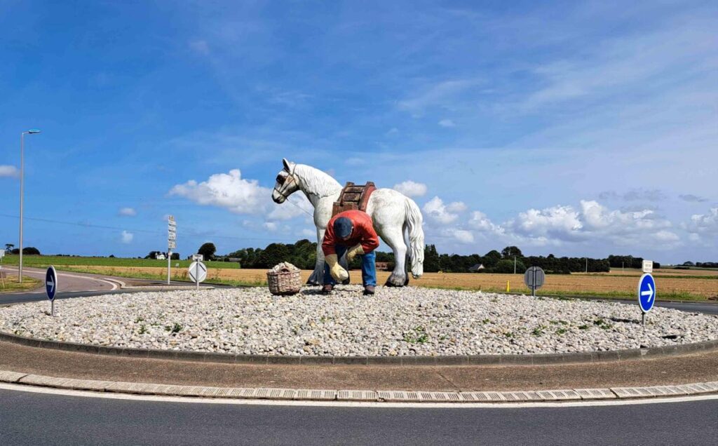 Die Franzosen geben sich wirklich enorm Mühe, um ihre Kreisel attraktiv zu gestalten. Darüber könnte man wohl Bücher schreiben (oder sie sind bereits geschrieben worden). Der Kreisel von Saint-Jouin-Bruneval hat Aufnahme in meinen Blog gefunden, weil er mir bereits vor gut zehn Jahren auf einer Velotour auffiel und weil er sich auch heute wieder im schönsten Lichte präsentierte.
