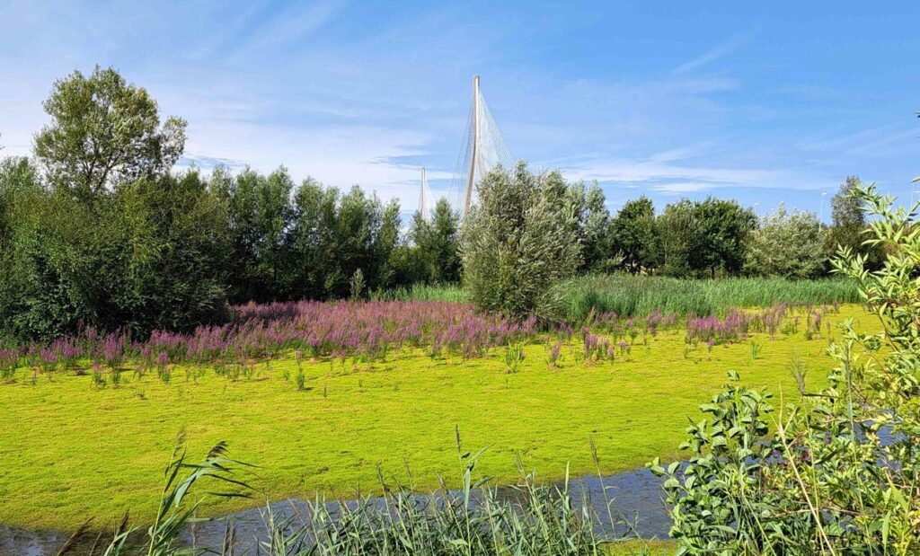 Von Paris bis zum Einfluss in den Ärmelkanal legt die Seine noch eine Distanz von knapp 200 km zurück (Luftlinie). Am Schluss wird sie zu einem richtig mächtigen Fluss mit einer Breite von teilweise bis zu 200 m. Um die Seine von Le Havre her kommend zu überqueren kann man zwischen zwei mautpflichtigen Brücken (Pont de Normandie und Pont de Tancarville) oder einem Umweg von fast hundert Kilometern auswählen. Wir sind über die Pont de Normandie gefahren, bei der man die Seine auf einer Durchfahrtshöhe von 52 Metern überquert. Ein gewaltiges Bauwerk. Vom nahegelegenen Naturschutzgebiet aus wirkt die Brücke allerdings schon wieder klein.