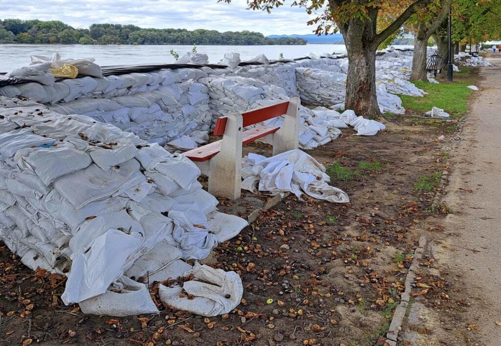 29. September 2024 / Ungarn / Vác / Sandsäcke an der Donau