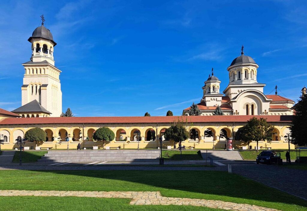 8. Oktober 2024 / Rumänien / Alba Iulia / Glockenturm und Orthodoxe Kathedrale