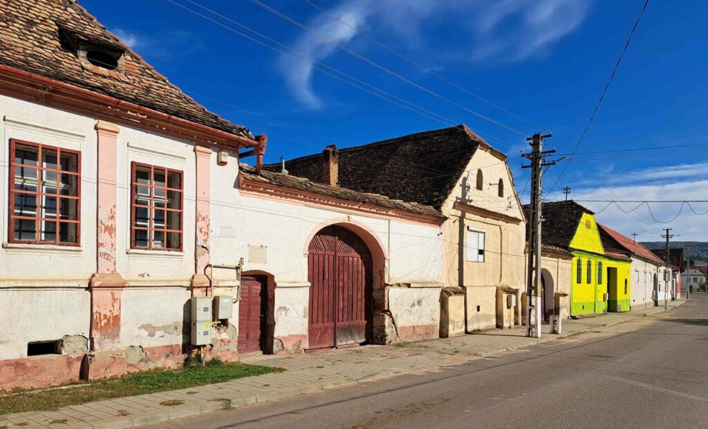 Unseren nächsten Zwischenhalt haben wir in Valea Viilor eingeschaltet, das auf deutsch Wurmloch heisst. Das ist garantiert keine Lüge. Auch in diesem kleinen Dorf gibt es eine sehr alte Kirchenburg, die zum UNESCO-Weltkulturerbe gehört. Gefallen haben uns auch die bunten Häuser, die hier weit verbreitet sind. In vielen Dörfern in Siebenbürgen bilden die Häuser über ganze Strassenzüge hinweg eine geschlossene Front. Nach jedem Haus folgt eine Mauer mit einem grossen Tor und dann das nächste Haus und die nächste Mauer. Hinter den Toren verbergen sich oft kleine Landwirtschafts- oder Gewerbebetriebe oder auch nur Parkplätze und Hinterhöfe. Das wahre Leben spielt sich hier hinter den Mauern ab.