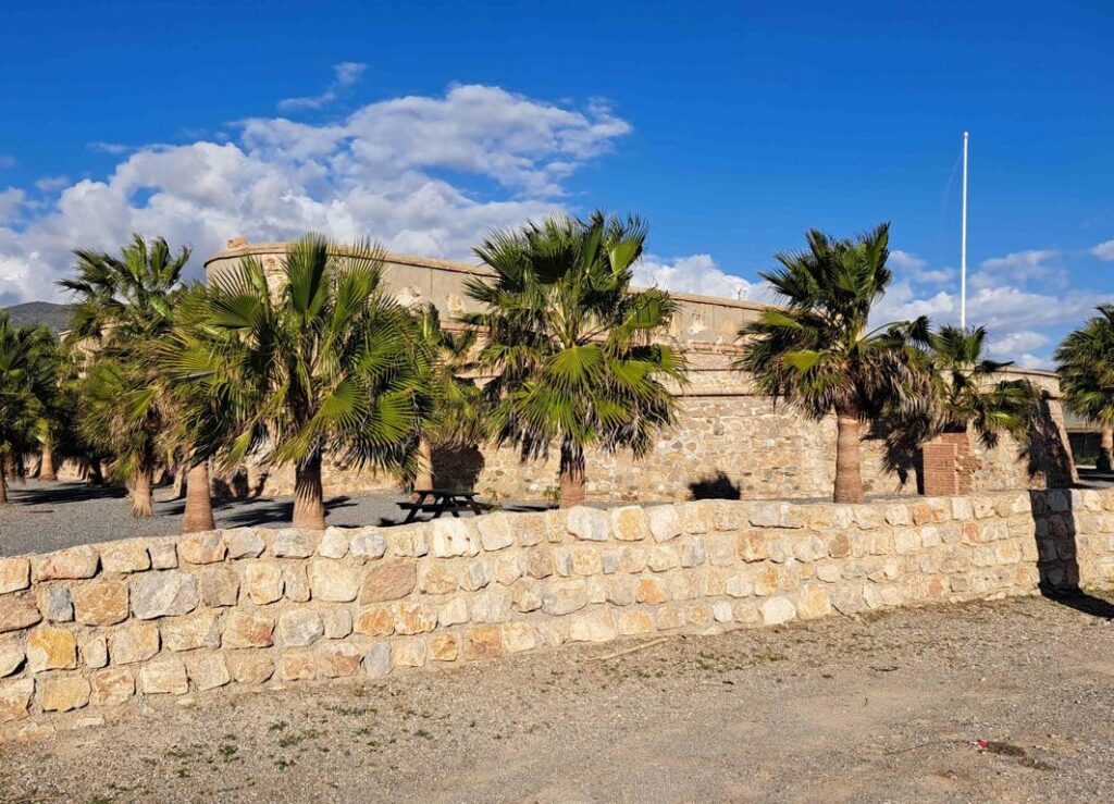 Mitten in einer riesigen Fläche mit Treibhäusern – ja auch die gibt es hier – taucht direkt an der Küste das Castillo de Carchuna auf. Vor lauter Palmen sieht man es kaum. Das wehrhafte Castillo lässt sich aber weder von Palmen noch von Treibhäusern verdrängen und hat sich damit einen Eintrag in unserem Blog verdient.