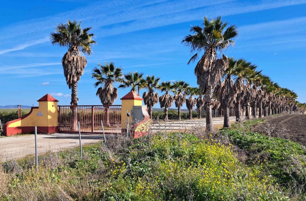 Schön, wenn man einen Gutsbetrieb besitzt, der so gross ist, dass es sich lohnt, die Zufahrt mit einer Allee auszustatten. Speziell schön, wenn diese Allee aus lauter Palmen besteht. So gesehen in Mesas de Asta auf dem Weg von Jerez de la Frontera nach Trebujena.