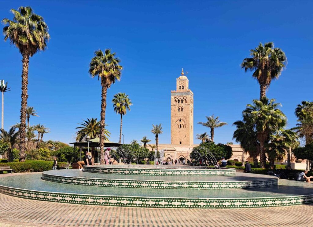 Mit einer Million Einwohnern ist Marrakesch die viertgrösste Stadt Marokkos (hinter Casablanca, Tanger und Fès). Die Stadt liegt nördlich des Hohen Atlas auf einer Ebene auf 450 Meter Höhe. Die Altstadt von Marrakesch gehört bereits seit vierzig Jahren zum UNESCO-Weltkulturerbe. Eines der Wahrzeichen von Marrakesch ist die Koutoubia-Moschee. Die Moschee wurde im 12. Jahrhundert erbaut und ist die grösste und eine der ältesten der Stadt. Leider können wir sie nur von aussen betrachten. Anders als etwa in der Türkei ist es in Marokko Nicht-Muslimen gesetzlich verboten, Moscheen zu betreten.