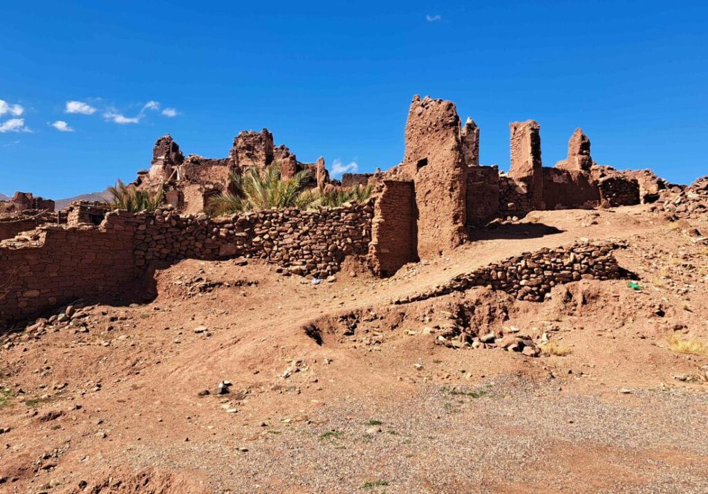 Die Kasbah (Burg) von Telouet gehörte lange zu den schönsten in ganz Marokko. Die zinnenbesetzte Burg war einst der Haupt- und Stammsitz des mächtigen Berberstammes der Glaoua. Dieser Stamm kontrollierte von hier aus über Jahrhunderte hinweg den Zugang zum Pass Tizi n’Tichka, der von Ouarzazate nach Marrakesch führt. Bei zwei früheren Marokko-Reisen konnte ich mich von der Schönheit der Burg überzeugen lassen. Leider hat ein starkes Erdbeben im September 2023 die Kasbah schwer beschädigt und später einstürzen lassen. Wenn man weiss, was für schöne Räume früher im Innern der Kasbah besichtigt werden konnten und wie malerisch diese von aussen aussah, dann schmerzt es, wenn man nur noch ein paar übriggebliebene Mauerreste vorfindet.