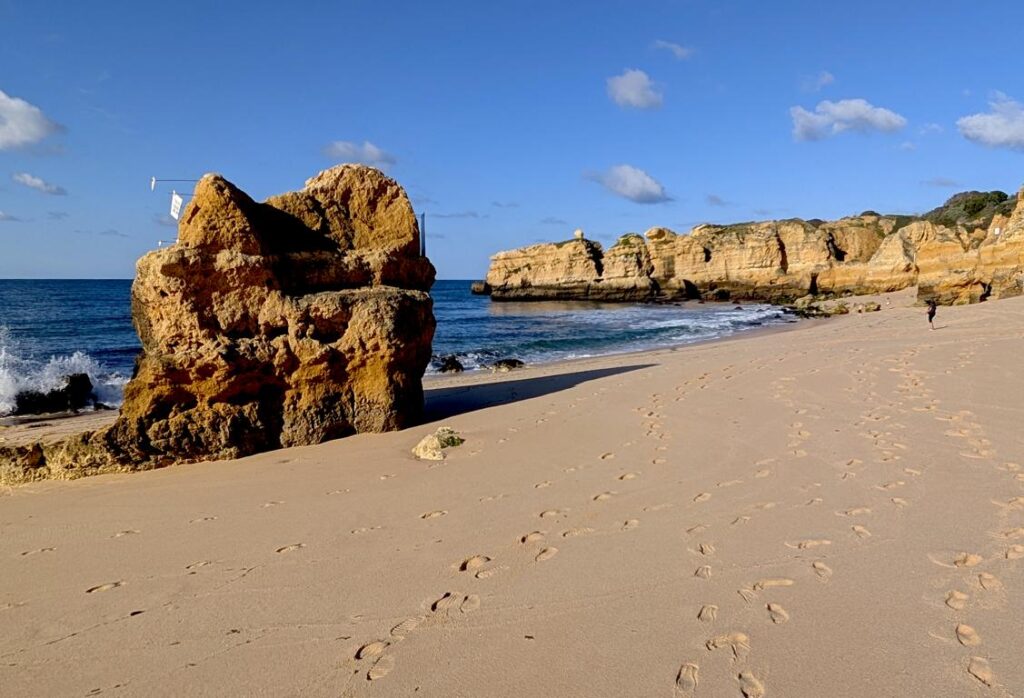 Hopo haben wir wieder einmal zu einem geruhsamen Arbeitstag verholfen. Von unserem Übernachtungsplatz in Albufeira aus sind wir gut sechs Kilometer weit nach São Rafael an die wunderschöne Praia de São Rafael gefahren. Und hier sind wir den ganzen Tag hindurch geblieben und wir werden auch hier übernachten. Morgens um zehn war der Strand noch fast menschenleer. Tagsüber sind es dann ein paar Leute mehr. Verglichen mit Albufeira hat man hier aber immer noch enorm viel Platz für sich. Dabei ist der Osterurlaub in der Region gut zu spüren. Aber die meisten Touristen reisen per Flugzeug an. Und wer sich kein Mietauto leistet, bleibt in der Nähe seines Hotels und kommt kaum zu etwas abgelegeneren Buchten.