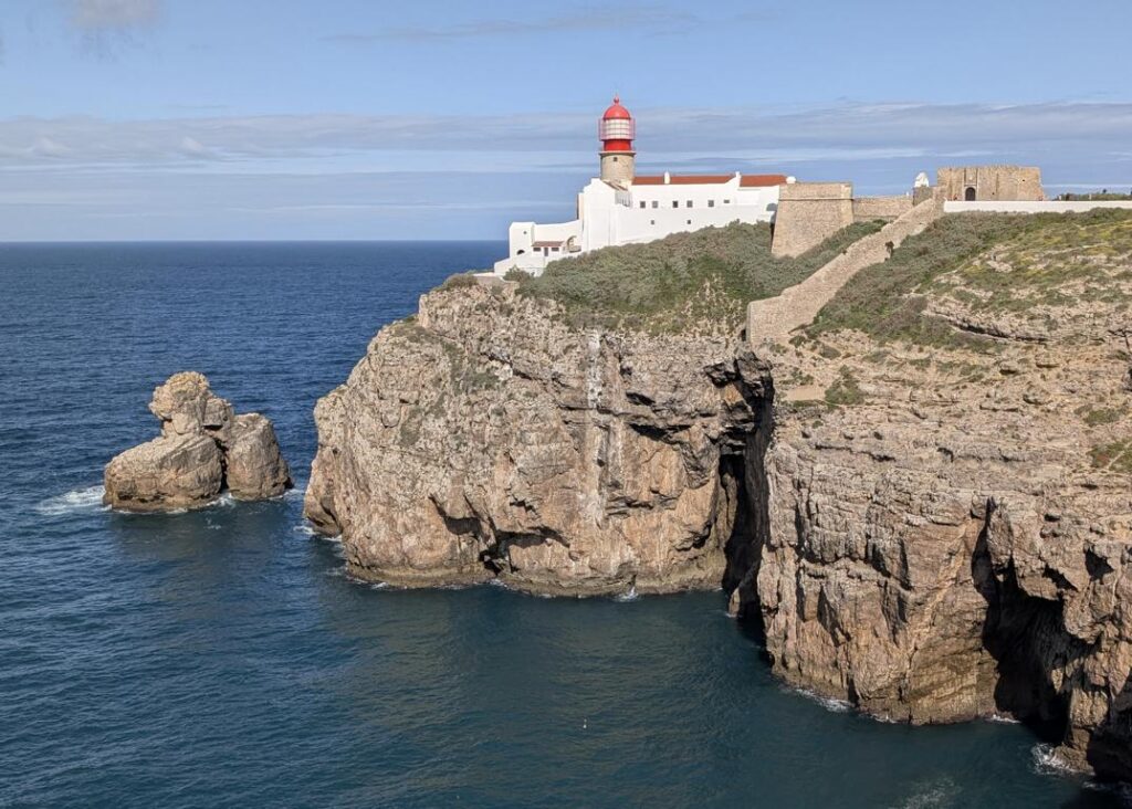 Heute Vormittag haben wir das Cabo de São Vicente besucht. Dies ist der südwestlichste Punkt auf dem europäischen Festland. Für einmal hatten wir Wetterglück, haben wir doch an einem eher trüben Tag ein Zeitfenster erwischt, an dem gerade die Sonne schien. Der Leuchtturm auf dem Cabo soll der lichtstärkste von ganz Europa sein. Sein Lichtkegel ist bei optimaler Sicht fast sechzig Kilometer weit sichtbar. Die See hier ist recht tückisch, weshalb die Schiffe auf einem der weltweit meistbefahrenen Seewege einen grossen Sicherheitsabstand einhalten. Kann man gut verstehen, wenn man die schroffen Felsen und die starke Brandung des Atlantiks sieht.
