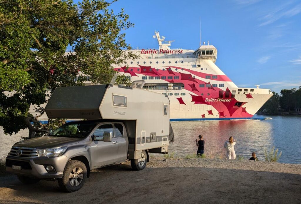 Vor den Toren von Turku liegt das Schärenmeer. Es ist ein Gebiet mit tausenden von Inseln und Schären, das sich vor der ganzen finnischen Südwestküste erstreckt. Das Schärenmeer ist bekannt für seine einzigartige Landschaft. Auf einer der vorgelagerten Inseln haben wir einen tollen Schlafplatz gefunden. Hopo ist direkt am Meer parkiert und kann die tolle Landschaft geniessen und den gelegentlich vorbeiziehenden kleinen Booten zuschauen. Zwischendurch gibt es dann richtig Action. Genau in der schmalen Passage zwischen unserer und der südlicher gelegenen Insel ist die Durchfahrt für die Fähren, die von Turku aus verschiedene schwedische Häfen ansteuern (darunter auch Stockholm). In der schmalen Passage wirken die Fähren wirklich riesig. Hopo ist beeindruckt.