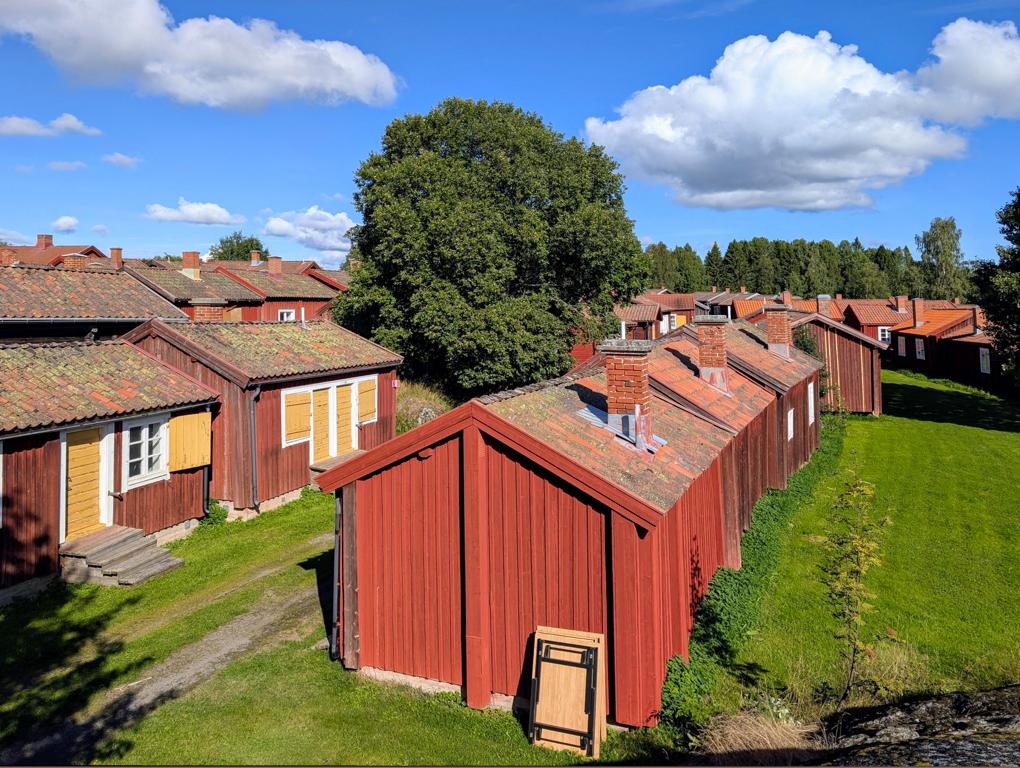 In der kleinen Gemeinde Lövanger haben wir nochmals eine Kirchenstadt besucht. Sie zählt zu den ältesten und schönsten in ganz Schweden. Zu Zeiten der Reformation forderte die Kirche von ihren Gläubigen regelmässige Kirchengänge ein. Da viele Gemeindemitglieder weite Wege zur Kirche hatten, wurden Kirchenstädte mit Häusern, Schuppen und Ställen gebaut, in denen die Gläubigen nächtigen konnten. In Lövanger sind noch gut hundert Gebäude aus dem 17. und 18. Jahrhundert erhalten, die alle in falunrot gehalten sind. Ein Teil der Unterkünfte dient heute als Hotelzimmer oder wird als Ferienwohnungen vermietet. Obwohl es verlockend aussah, halten wir Hopo die Treue.