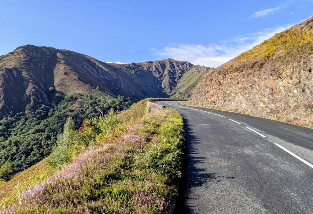 Den gestrigen Sonntag habe ich gemütlich im Camper verbracht. Der Dauerregen, der über das Baskenland niederprasselte, zwang mich zu einem ersten ungewollten Ruhetag. Und die Wetterprognosen deuteten darauf hin, dass heute gleich ein zweiter Ruhetag folgen wird. Vor allem während der ersten Vormittagshälfte war es dann aber richtig schön. Der Col d’Ispéguy verbindet Spanien mit Frankreich. Ihn bei so schönem Wetter und nur wenig Verkehr zu befahren, hat Freude bereitet. Die Steigungen sind recht moderat, so dass man gut vorwärts kommt. Die bisherigen drei Pässe waren effektiv noch keine richtigen Herausforderungen (vor allem im Vergleich zu dem, was noch kommt). Sich die Namen dieser drei Pässe zu merken ist fast schwieriger als sie zu befahren.