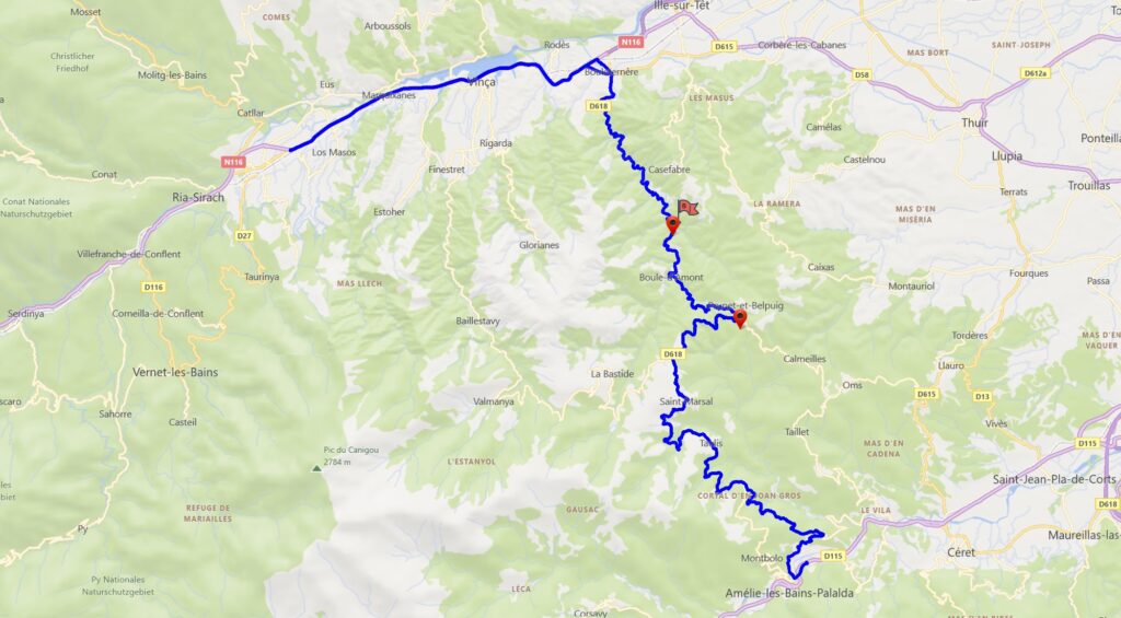 Strecke: Prades – Col de Ternère – Col de Fourtou – Col de Xatard – Amélie-les-Bains (und zurück)