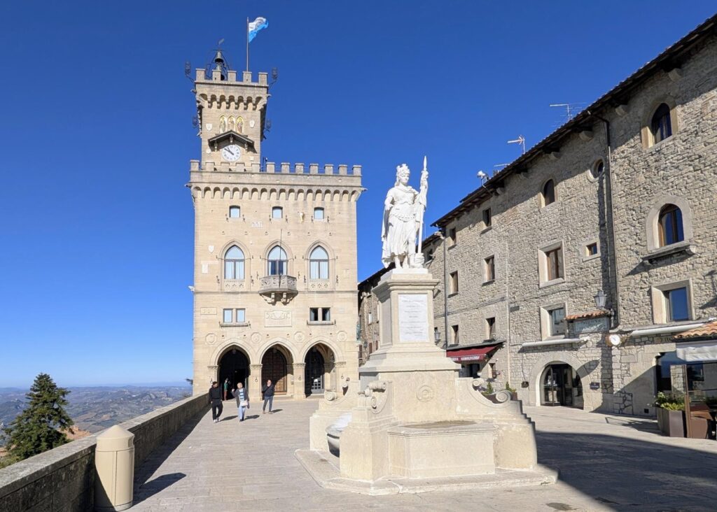 Eines der bekanntesten Fotomotive von San Marino ist der Palazzo Pubblico (Rathaus) mit der davor platzierten Freiheitsstatue. Das Rathaus ist der Sitz der Regierung und des Parlaments. San Marino wird von zwei Capitani Reggenti regiert, die alle sechs Monate vom sechzigköpfigen Parlament gewählt werden. Die beiden Captiani Reggenti teilen sich die Funktion als Staatsoberhäupter und sind an vorderster Front für das Wohl der 35’000 Menschen verantwortlich, die in San Marino leben.