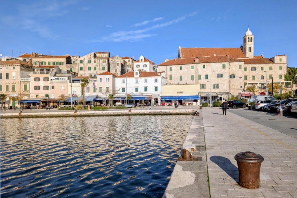 8. Dezember 2025 / Kroatien / Sibenik / Uferpromenade mit Crkva Svetog Frane