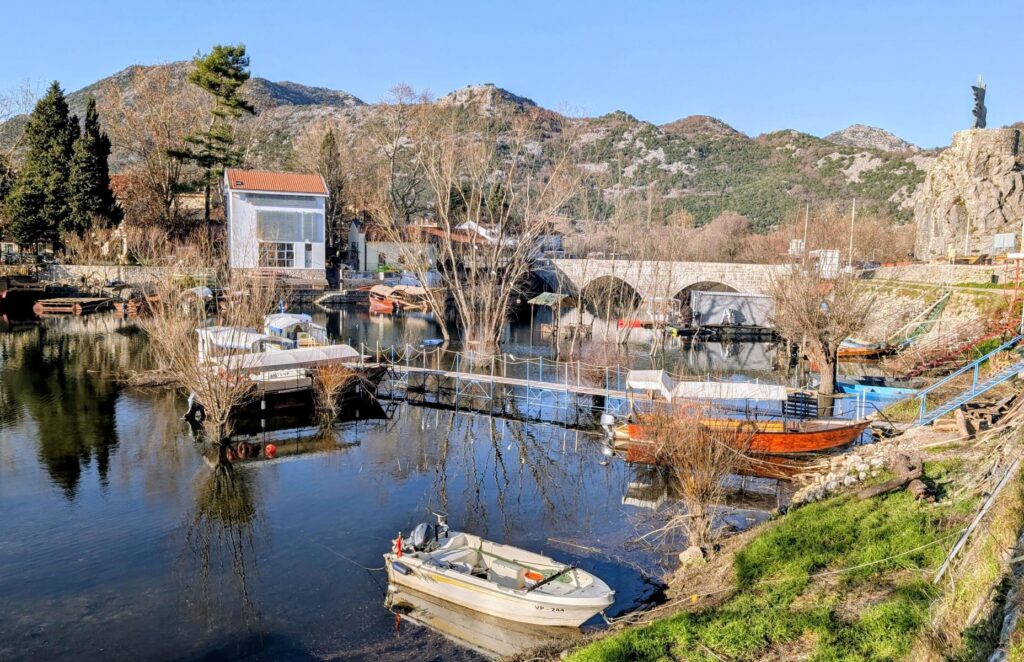 Virpazar liegt am Fluss Crmnica, der hier in den Skutarisee fliesst. In meinem nicht mehr ganz taufrischen Reiseführer wird Virpazar noch als Fischerdorf angepriesen. Berufsfischer und Fischerboote habe ich allerdings keine gesehen. Dafür eine Reihe von Ausflugsbooten. Virpazar ist der Ort, von dem aus die meisten Touristen zu einer Bootstour starten. Den wenigen Gästen, die mir heute in Virpazar begegnet sind, war allerdings mehr nach Essen denn nach einer Bootsfahrt zumute.