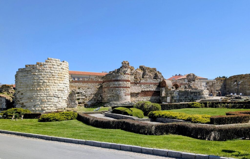 In Nessebar waren die Zeiten offensichtlich nicht immer so friedlich wie heute. Fährt man vom Festland auf die Halbinsel, wird man als Erstes von den Ruinen einer antike Festungsanlage begrüsst. Die Verteidigungsanlage stammt überwiegend aus der frühbyzantinischen Zeit. Die Mauern umschlossen damals die ganze Halbinsel, um die strategisch wichtige Hafenstadt zu schützen. Heute sind nur noch Teile der eindrucksvollen Westmauer als Ruine erhalten. Andere Bereiche liegen im Meer.