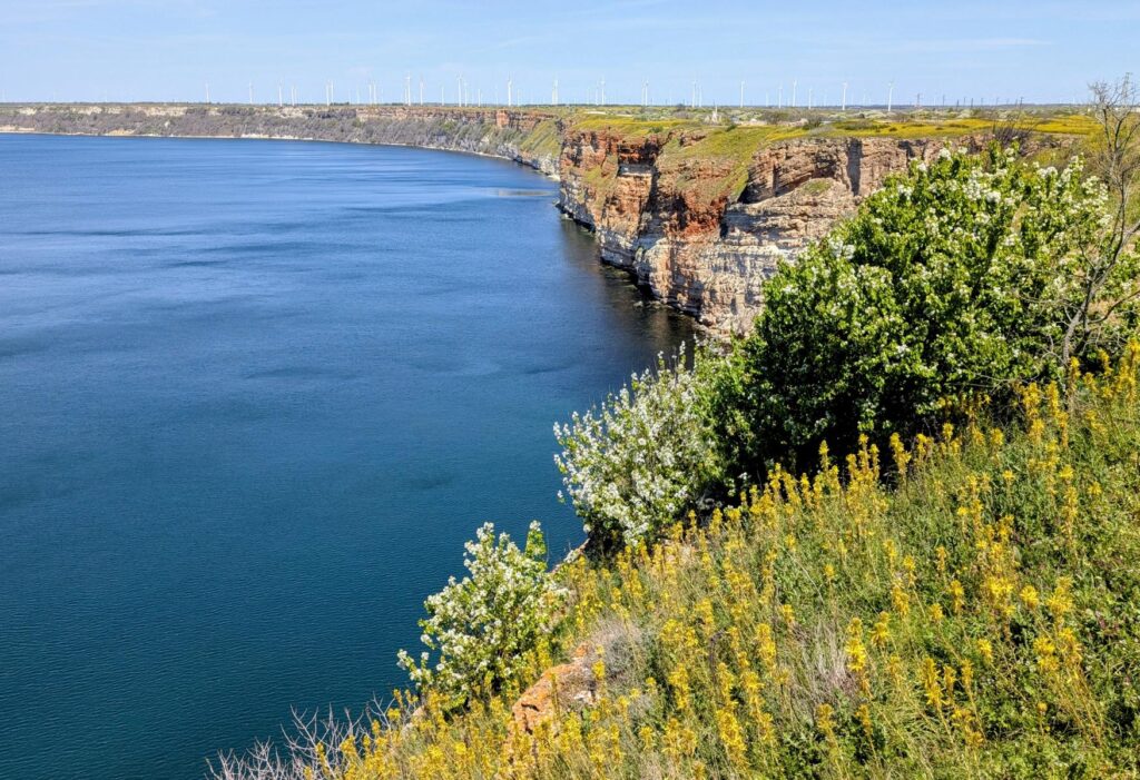 Kap Kaliakra gilt als eines der Highlights an der bulgarischen Schwarzmeerküste. Die rund zwei Kilometer lange Landzunge bietet dramatische Steilklippen und eine antike Festung. Das Kap soll ideal sein, um Delfine zu beobachten. Diese haben sich heute leider nicht blicken lassen. Dafür waren viele Kormorane zu sehen. Und es blüht hier wunderschön. Die farbige Blütenpracht ergänzt sich ideal mit den steilen, rötlichen Felsen, die bis zu siebzig Meter ins Meer abfallen.