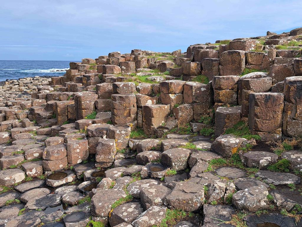 Das Warten auf besseres Wetter für den Besuch des Giant’s Causeway hat sich gelohnt. Heute Morgen scheint tatsächlich wieder die Sonne. Zumindest zu Beginn. Der Giant’s Causeway wurde bereits 1944, also vor achtzig Jahren, von der UNESCO zur Welterbestätte erklärt. Im Zentrum des Parks steht der Giant Causie Maxie Traxie, eine Ansammlung von rund 40’000 gleichmässig geformten Basaltsäulen. Diese wurden vor circa 60 Millionen Jahren bei der Abkühlung heisser Lava so geformt. Die Ansammlung so vieler gleichmässig gestalteter Säulen ist eindrücklich. Weil es sich um eine der Hauptsehenswürdigkeiten Nordirlands handelt hat es aber auch extrem viele Besucher hier. Dagegen können wir grundsätzliche nichts einwenden. Was wir besuchen dürfen. sollen alle anderen auch besuchen dürfen. Wohl ist es uns in solchen Menschenmassen aber nicht. Wir sind daher froh, dass wir auf der grünen Insel viele prächtige Orte gefunden haben, auf die die Masse noch nicht gestossen ist oder die zu besuchen der Masse zu mühsam ist. Gut so, so kommt jeder auf seine Rechnung.