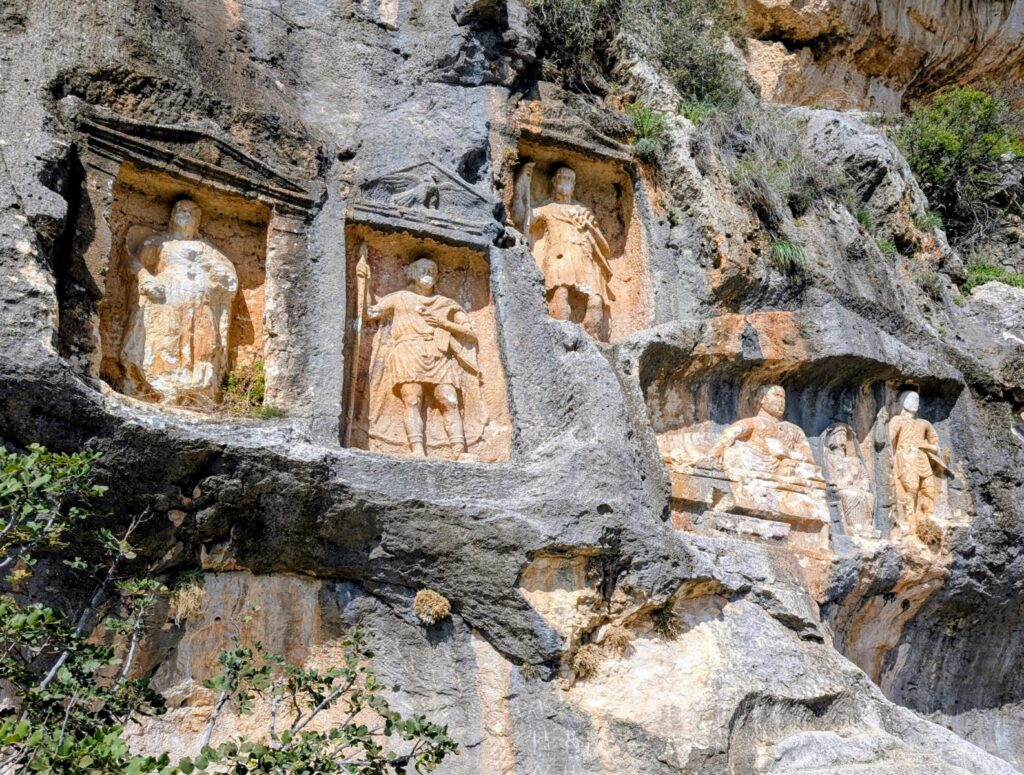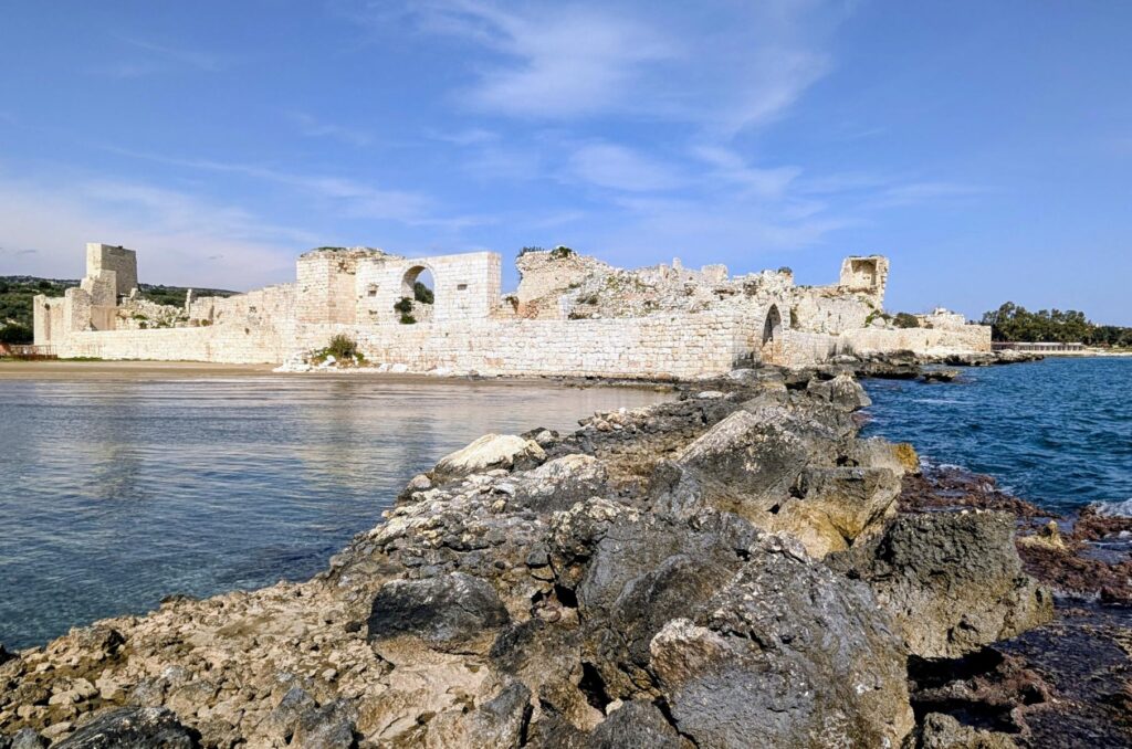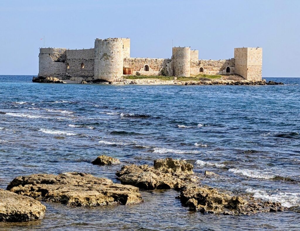 In Kizkalesi gibt es gleich zwei eindrückliche Burganlagen zu besichtigen. Neben der auf einer Insel gelegenen Mädchenburg gibt es auch noch eine eindrückliche Festung an Land. Auch diese stammt aus dem 12. Jahrhundert. Sie besteht aus eindrucksvollen Mauern, Türmen, Spolien antiker Bauten und beherbergt Reste einer Kapelle sowie Zisternen. Und sie ist problemlos zu Fuss erreichbar. Heute haben wir Hopo einen halben Ruhetag gegönnt und sind nur rund 35 Kilometer weit gefahren. Der Treibstoff wird auch hier in der Türkei teurer. Statt 1,15 Franken wie bisher haben wir heute bereits 1,20 Franken pro Liter Diesel bezahlt. Was für uns immer noch ein absoluter Dumpingpreis ist, tut der einheimischen Bevölkerung schon mehr weh. Ansonsten spüren wir hier in der Südosttürkei wenig vom Irankrieg. Wenn wir aber daran denken, dass wir vor zwölf Tagen bei der Überquerung des Tendürek-Passes sehr direkt an der iranischen Grenze vorbeigefahren sind (der Iran war keine zehn Kilometer entfernt), wird uns schon ein wenig mulmig.