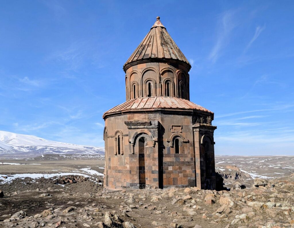 Die Kirche St. Gregor der Abughamrentz ist eines der besterhaltenen mittelalterlichen Bauwerke in der Ruinenstadt Ani. Die Kirche wurde vor über tausend Jahren als Privatkapelle einer einflussreichen Familie errichtet. Zur Ruinenstadt gehören eine imposante Stadtmauer, eine Zitadelle, Kirchen und Moscheen sowie weitere Gebäude. Die Anlage ist auch besonders schön gelegen. Sie liegt direkt am Grenzfluss Arpaçay, der die natürliche Grenze zu Armenien bildet. Weiterhin ist sie von Tälern umgeben, die voll von einst bewohnten Höhlen sind. Und im Hintergrund liegen schneebedeckte Berge. Ani hat uns sehr gut gefallen und wir können den Besuch bestens weiterempfehlen.