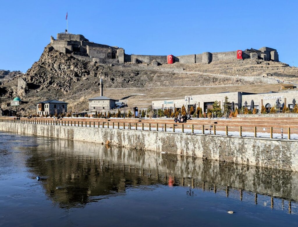 Wir wären beinahe wieder nach Armenien zurückgekehrt. Die Ruinenstadt Ani, die zum UNESCO-Weltkulturerbe gehört, liegt direkt an der türkisch-armenischen Grenze. Ani, das oft als „Stadt der 1001 Kirchen“ bezeichnet wird, war im 10. Jahrhundert die Hauptstadt des armenischen Bagratiden-Reiches und ein wichtiger Handelsplatz an der Seidenstrasse. Heute ist es in der Osttürkei ein Touristenmagnet. Als wir heute Vormittag zeitig dort eintrafen, waren bereits mehrere Busse, Kleinbusse und Personenwagen vor Ort. Einen solchen Auflauf sind wir uns schlicht nicht mehr gewohnt. Dass die Ruinenstadt gut besucht wird hat aber ihren guten Grund. Die Anlage ist wirklich sehenswert.