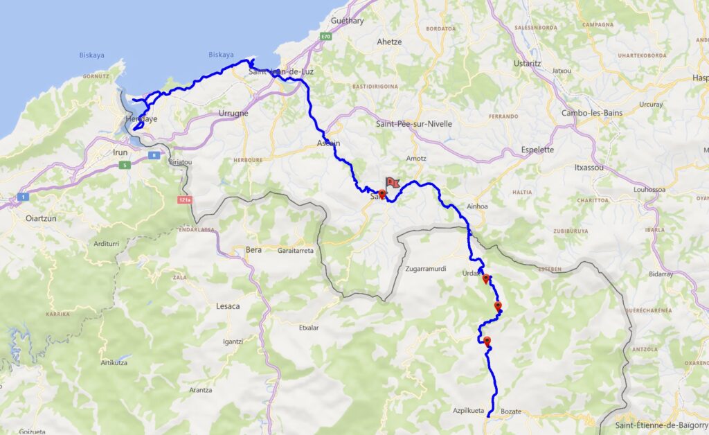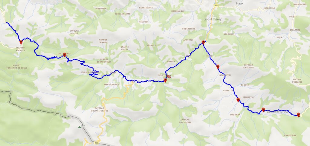 Heutige Pässe: Col de Burdincurutcheta (4. Pass / 1’135 Meter hoch / nun beidseitig befahren) und Col Bagargui (5. Pass / 1’327 Meter hoch / beidseitig befahren).
