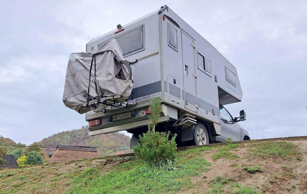 Unsere erste Nacht in Rumänien haben wir in Oradea auf einem Campingplatz verbracht. Wir mussten wieder einmal ent- und versorgen und bekamen so auch noch die Gelegenheit, eine Waschmaschine zu nutzen. Die nächste Nacht stehen wir wieder frei, was in Rumänien ganz offiziell erlaubt ist. Camper scheinen hier nicht sehr verbreitet zu sein. Wir haben uns heute Morgen vorgenommen, die Camper zu zählen, die uns den Tag über begegnen. Wir sind immer noch bei Null. Im Osten Ungarns ist uns ein Camper pro Tag begegnet, in Rumänien noch gar keiner. Wir vermuten, dass das im Sommer leicht anders aussieht. Noch zur Foto: Hopo steht auf einem ebenen Platz und ist gegen hinten abgesichert. Einer ruhigen Nacht sollte daher nichts im Wege stehen.