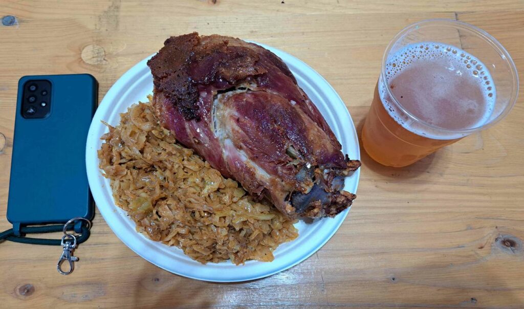 Mitten in Cluj sind wir in ein grosses Festzelt „gestolpert“, in welchem die Einheimischen ihr Oktoberfest feiern. „Herbstfest“ heisst das hier (tatsächlich so auf deutsch). Eine Zehnmann-Band hat fetzige Musik gespielt. Dazu gab es Wiesn-Essen und natürlich Bier. Als Haxen-Liebhaber habe ich mir die original rumänische Schweinshaxe mit bayrischem Kraut nicht entgehen lassen. Gemäss Restaurateur hat jede Haxe mindestens 1,15 Kilo gewogen. Davon kann natürlich nicht alles gegessen werden. Was übrig blieb war aber immer noch recht viel Fleisch. Super lecker und mit Sicherheit die grösste Haxe, die mir jemals auf den Teller kam. Damit man sich eine Vorstellung von den hiesigen Preisen machen kann: die Haxe kostete gut 17 Franken, der halbe Liter Bier unter drei Franken. Wegen der Verpflegung und der fetzigen Musik werden wir uns immer gerne an das Herbstfest von Cluj zurückerinnern.