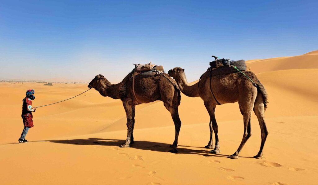 28. Februar 2025 / Marokko / Erg Chebbi / Omar mit seinen Dromedaren