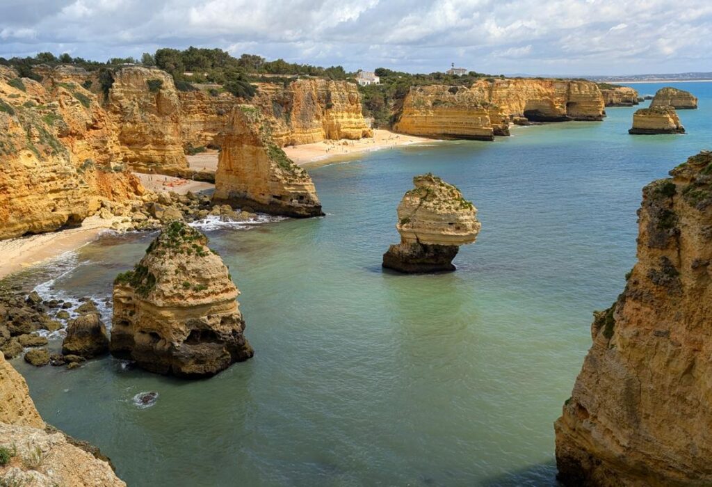 Benagil ist bekannt für seine Höhle, die zu den beliebtesten Sehenswürdigkeiten der Algarve gehört. Östlich von Benagil gibts es aber auch eine prächtige Küstenlandschaft mit spektakulären Felsen, die aus dem Meer ragen. Auf dem Weg der Küste entlang war heute viel Betrieb. Die Osterferien haben viele Gäste an die Algarve gelockt. Insbesondere Briten hat es in Massen. Für sie ist das aktuelle Wetter ideal. Gelegentlich scheint die Sonne doch schon recht intensiv, so dass sie sich ihren obligaten Sonnenbrand holen können. Der Regen, der dann bald folgt, hilft ihnen, trotz masslosem Bierkonsum nicht zu vergessen, woher sie kommen.