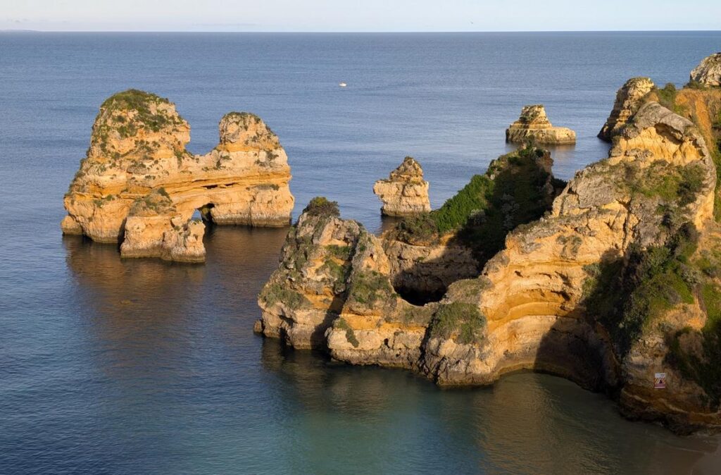 Die Felsküste südlich von Lagos wird von vielen als die schönste der ganzen Algarve bezeichnet. Von der Stadt aus führt ein guter Weg im Zickzackkurs und mit vielen Auf- und Abstiegen der schroffen Küste entlang. Über eine steile Treppe hat man zwischendurch die Möglichkeit, zu zwei kleinen Sandstränden abzusteigen. Immer wieder bieten sich atemberaubende Ausblicke auf bizarre Kalksteinformationen und auf majestätische Steinsäulen, die aus dem Meer herausragen. Einfach herrlich.