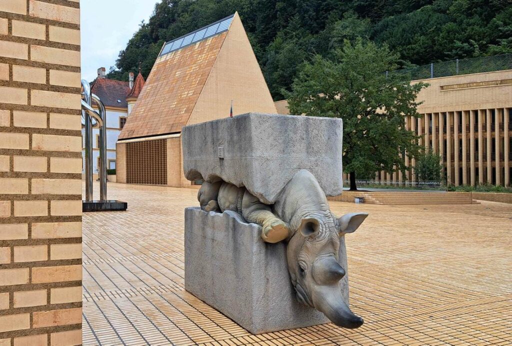 13. September 2024 / Liechtenstein / Vaduz / Nashorn beim Landtagsgebäude