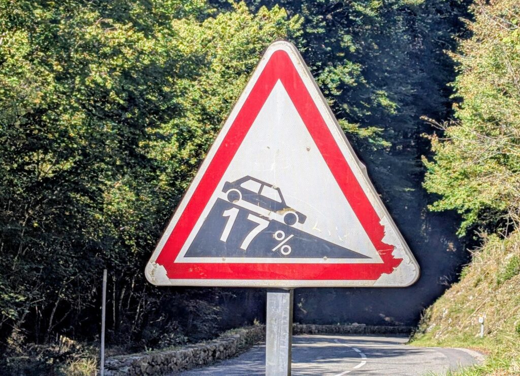 Ich hatte heute wieder einmal riesiges Wetterglück und durfte einen sehr sonnigen Tag geniessen. Und es war ein ausgesprochen warmer Tag, der wärmste seit zwei Wochen. Eine grosse Säule auf dem 2’408 Meter hohen Port d’Envalira zeigte am Nachmittag eine Temperatur von 18 Grad an. Ich habe das nicht für möglich gehalten und meine Wetterapp konsultiert. Diese meldete für das etwas tiefer gelegene Pas de la Casa 21 Grad an. Da kann man getrost auf warme Handschuhe und eine zweite Jacke verzichten. Der Port d’Envalira ist eher flach und gut ausgebaut (auf den Geraden meist dreispurig). Die Abfahrt ins Tal war heute ein richtiger Genuss. Bei breiten Strassen, weiten Kurven, einem guten Belag und keinem übertriebenen Gefälle kann man es so richtig sausen lassen. Und das auf einer Länge von über dreissig Kilometern. Radfahrerherz, was willst du mehr?