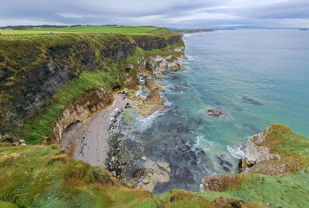 Wir sind noch etwa 20 Kilometer vom Giant’s Causeway, einer der Hauptsehenswürdigkeiten Nordirlands entfernt. Und gerne würden wir diese heute besichtigen. Wir ziehen aber wieder einmal einen Regentag ein. Die Wetteraussichten für den heutigen Tag sind schlecht, und das Wetter hält sich leider an die negativen Vorhersagen. Wir beschliessen daher, einen Ruhetag einzulegen und nur bis zur Park & Ride Station vom Giant’s Causeway zu fahren, bei der Wohnmobile übernachten dürfen. Unterwegs halten wir bei einer Aussichtsplattform, die einen ausgezeichneten Blick auf die White Rocks von Magheracross zulässt, die östlich von Portrush liegen. Hier regnet es ununterbrochen und heftig. Nach über einer Stunde hat der Himmel dann aber doch noch ein Einsehen mit uns und er schliesst kurz die Schleusen. Was wir zu sehen bekommen gefällt uns sehr. Das Warten hat sich einmal mehr gelohnt.
