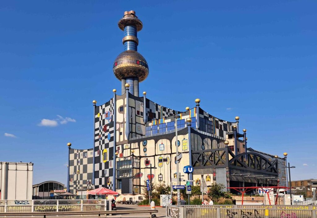 Für bescheidene acht Euro kann man in Wien einen ganzen Tag lang sämtlich Metro-, Bus- und Strassenbahnlinien benutzen (einschliesslich der Fahrt vom Kahlenberg hinunter in die Stadt). Wenn uns die Füsse vom Spazierengehen zu Brennen beginnen, machen wir uns gelegentlich den Spass, aufs Geratewohl in irgend einen Bus oder eine Strassenbahn einzusteigen und zu schauen, wo wir landen und was wir unterwegs alles sehen. So sind wir auch beim Wasserturm im 10. Wiener Gemeindebezirk Favoriten gelandet. Der denkmalgeschützte Wasserturm wurde Ende des 19. Jahrhunderts erbaut. Er konnte 1’000 Kubikmeter Frischwasser speichern und diente der Wasserversorgung des Gemeindebezirks. Vermutlich findet man den Wasserturm in keinem Reiseführer. Uns hat er gleichwohl gut gefallen.